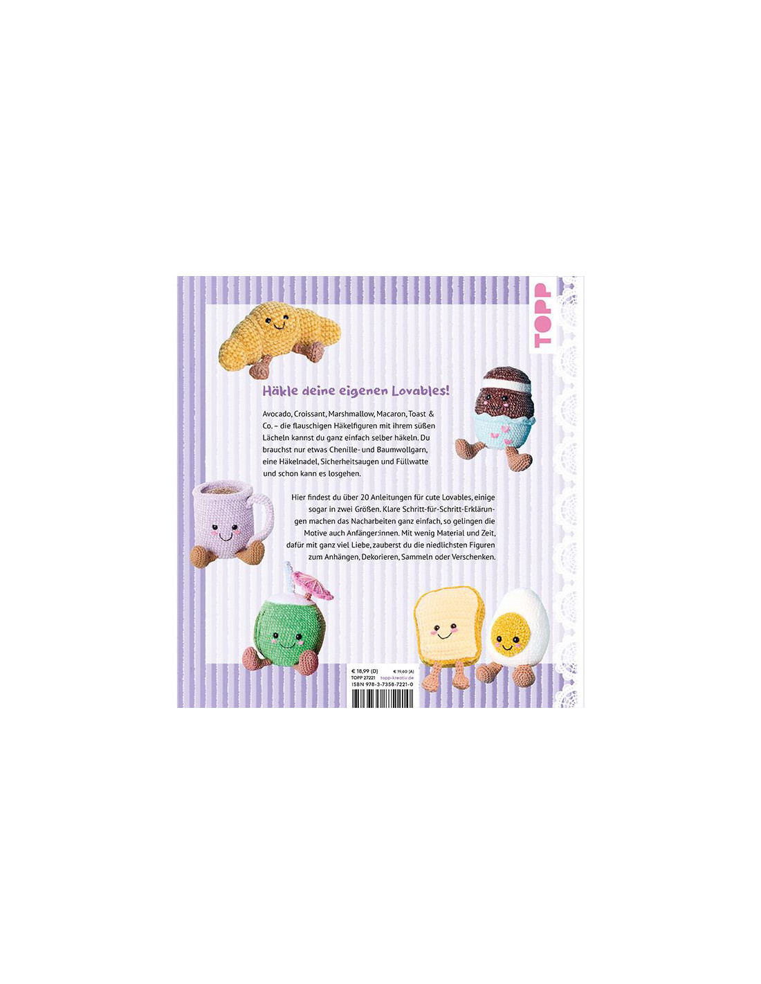 Teddybären haben ausgedient, denn jetzt wird mit Avocado, Croissant, Marshmallow, Macaron, Toast und Co. gekuschelt. Weich, flauschig und mit einem süßen Lächeln - die niedlichen Plüschfiguren mit Suchtfaktor kannst du mit diesem Buch ganz einfach selberhäkeln. Du brauchst dazu nur ein bisschen Chenille- und Baumwollgarn, eine Häkelnadel, Sicherheitsaugen, Füllwatte und schon entstehen die tollsten Lovables , ganz nach deinen Wünschen! Sie sind das perfekte Geschenk für deine Lieblingsmenschen oder du häkelst dir deine eigene Sammlung an Lieblingskuschellovables.