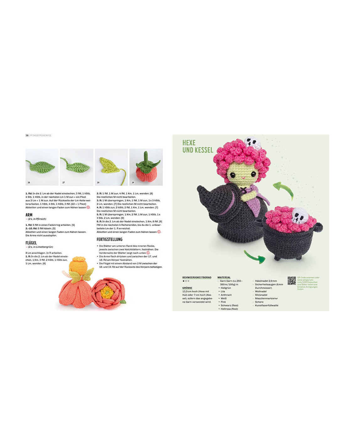 Eine Figur, zwei Charaktere. Häkle die faszinierende Amigurumis von @chibiscraft, die sich im Handumdrehen verwandeln - einfach umstülpen und staunen! Die detailreichen Anleitungen sind zwar etwas anspruchsvoller, bereiten aber auch umso mehr Freude. Aus Blume wird Fee, aus Frosch wird Prinzessin, aus Hexenkessel wird Zauberin - erwecke die verspielten Unikate zum Leben.