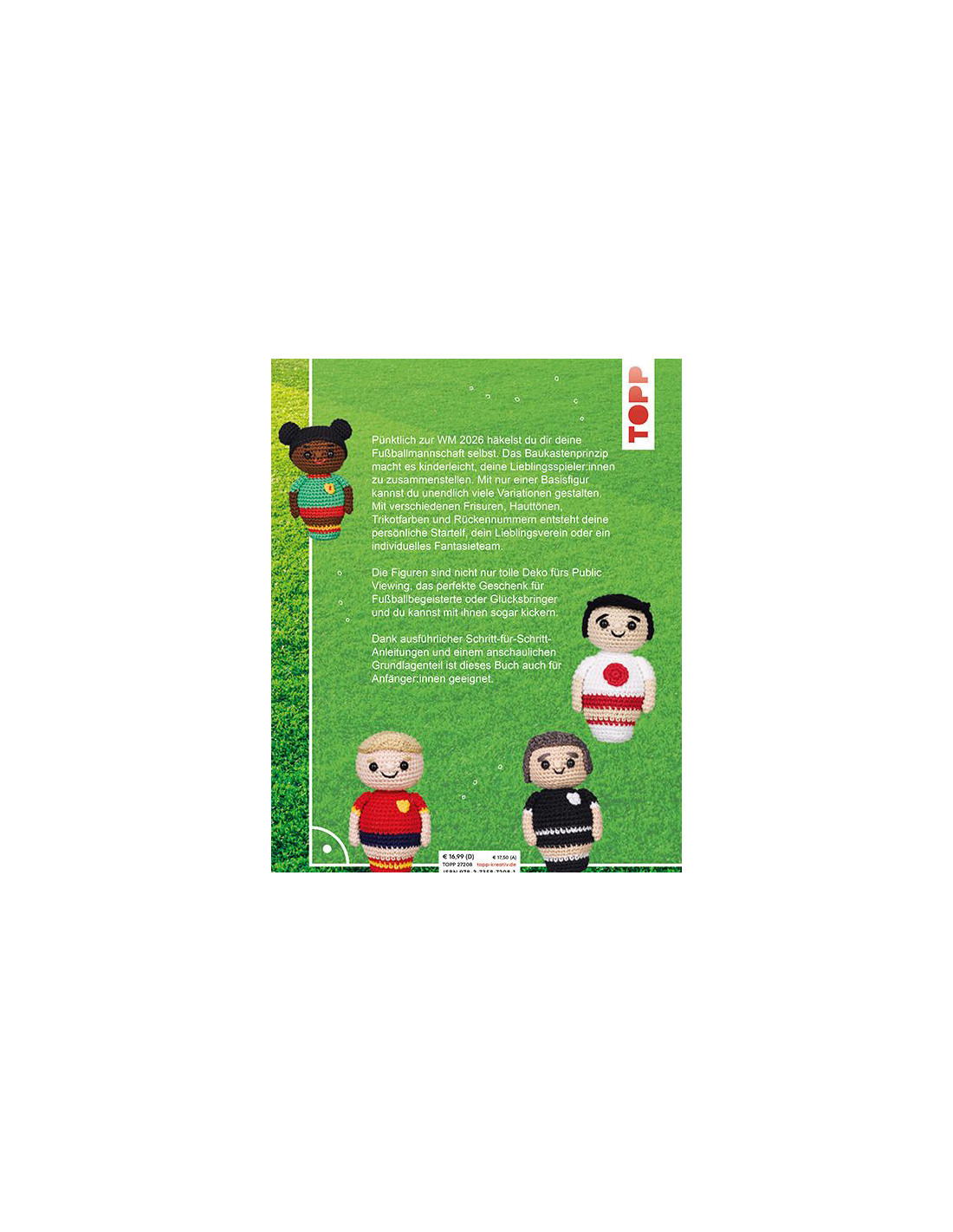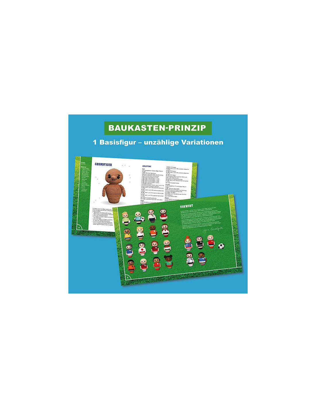 Pünktlich zur WM 2026 häkelst du dir deine Fußballmannschaft einfach selbst. Das Baukastenprinzip macht es dir kinderleicht, deine eigenen Lieblingsspieler:innen zu häkeln. Mit nur einer Basisfigur kannst du unzählige Variationen gestalten: verschiedene Frisuren, Hauttöne, Trikotfarben und sogar Rückennummern - so entsteht deine ganz persönliche Startelf, dein Lieblingsverein oder ein komplett eigenes Fantasieteam.