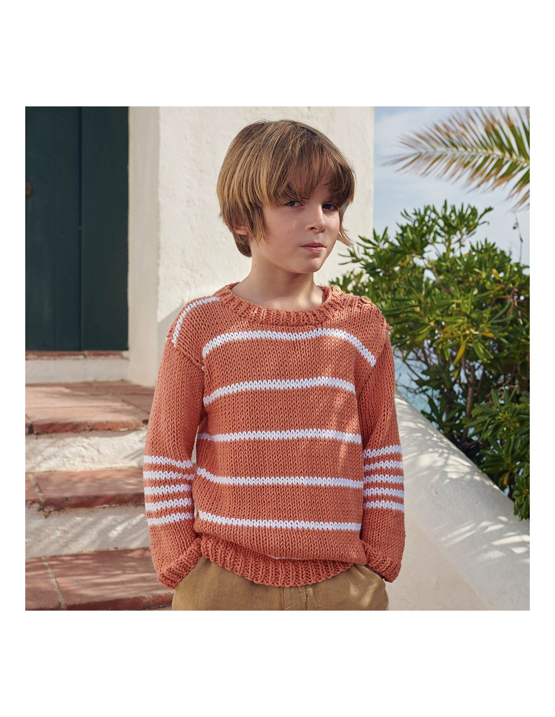 Gestreifter Kinderpullover aus Easy Knit Cotton (de/fr/it) Gr.86 - 140