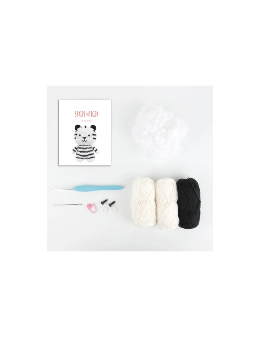 Das Set enthält alles, was Sie für Ihr Amigurumi benötigen: 100 % Baumwollgarn, Häkelnadel, Zubehör, Füllmaterial und Anleitung.