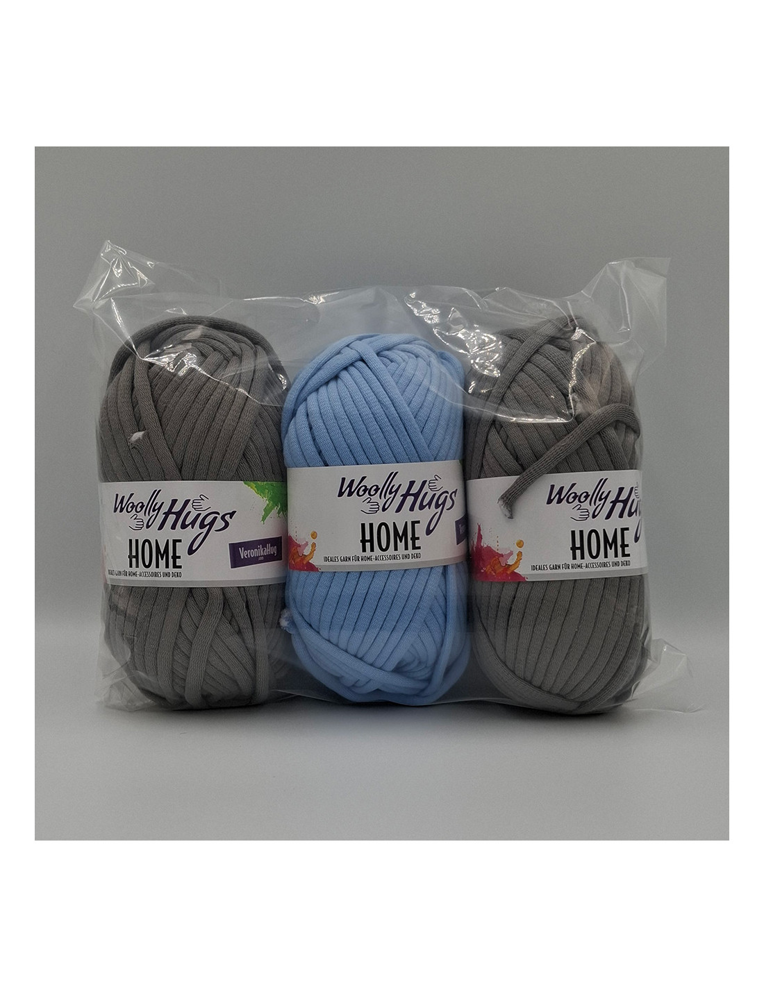 HOME von Woolly Hugs ist ein Textilgarn aus Baumwolle und Polyamid und wird mit Nadelstärke 8 bis 10 gestrickt oder gehäkelt.
