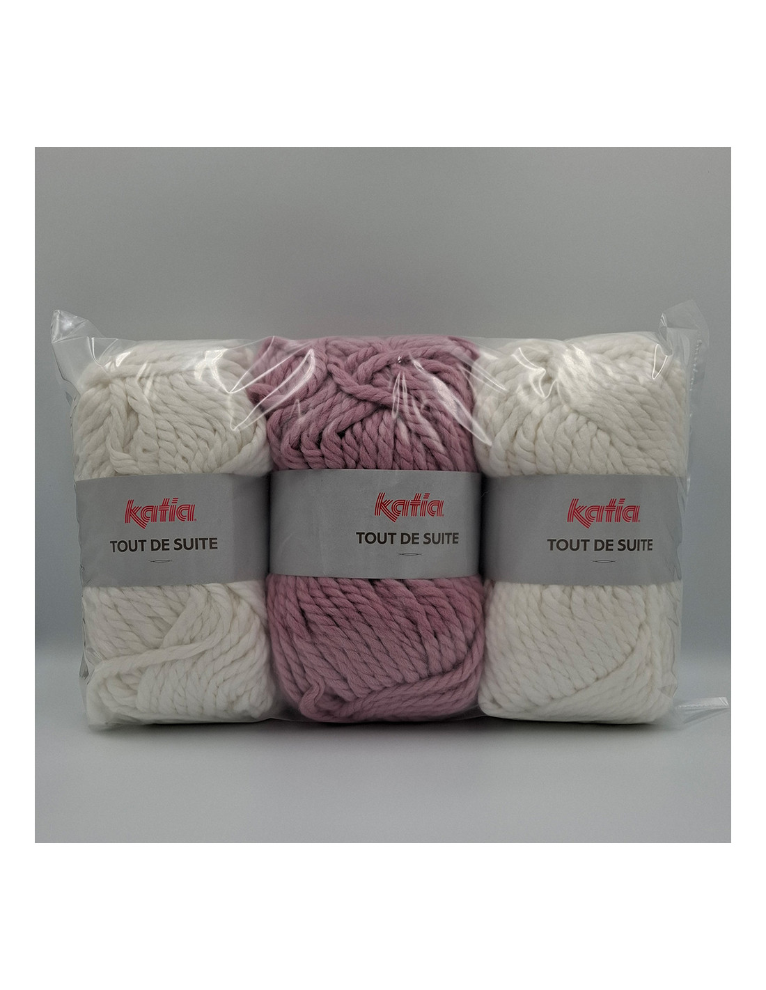 Tout de Suite von Katia ist ein XL Garn in kräftigen und natürlichen Farben. Wie der Name schon sagt, strickt oder häklet man ganz schnell oder eben "tout de suite" mit grossen Maschen trendige Wohndekos, Heimtextilien wie Kissen und Decken oder modische Maxi-Schals und Mützen. Die weiche Mischung aus Polyacryl und Wolle hält warm und ist damit perfekt für den Winter.