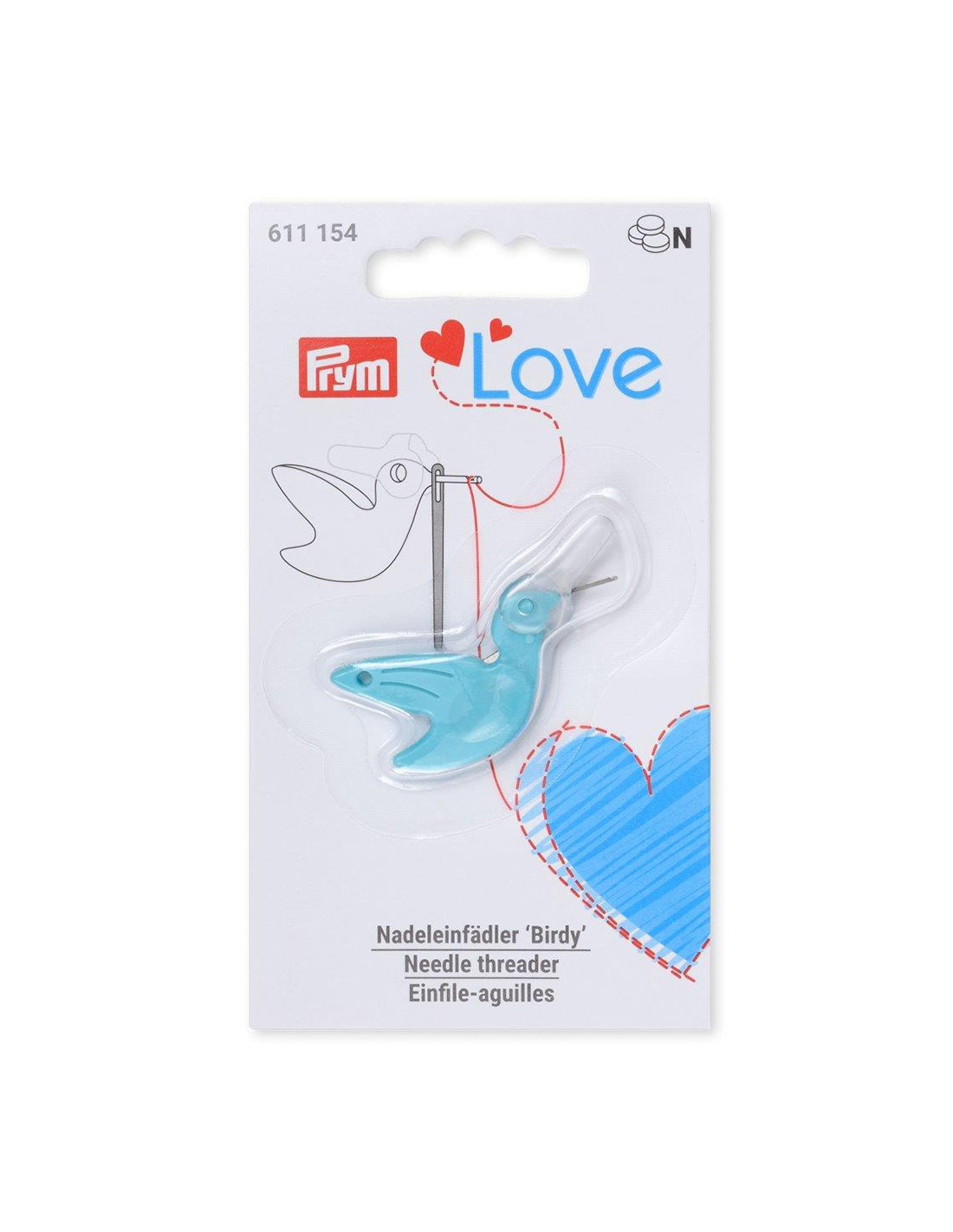 Dieser niedliche Nadeleinfädler „Birdy“ aus der Serie Prym Love ist sowohl für Anfänger als auch für professionelle Nähfans ein echter Gewinn. In fröhlichem Mint bietet er genau das, worauf es bei einem Einfädler ankommt: Eine einfache Handhabung durch die Griffmulde, die während des Einfädelns einen sicheren Halt gibt. Die transparente, klappbare Abdeckung aus Kunststoff bietet zusätzlich Schutz vor Verletzungen. Weiterer Vorteil: Der integrierte Fadenabschneider ersetzt eine Schere! So macht das Einfädeln von Garn auch Nähanfängern ganz besonderen Spass. Der Nadeleinfädler „Birdy“ ist für die meisten Nähnadeln geeignet, allerdings nicht für Perlnadeln.